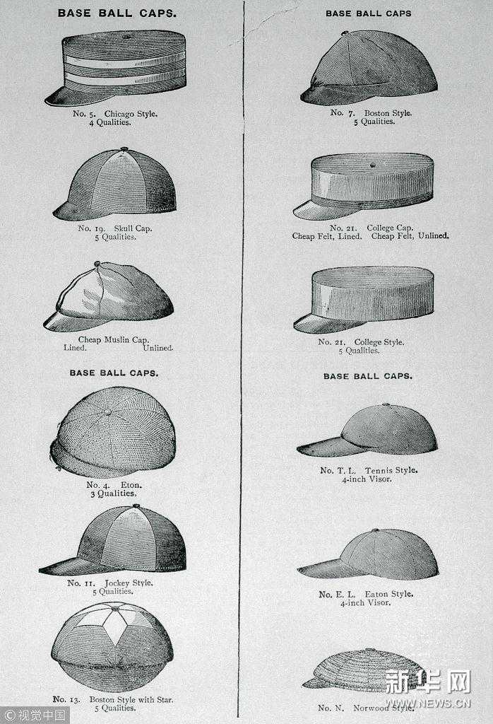 19世纪的棒球帽。1839年的某一天,美国的Doubleday先生在布鲁克林举办了第一场棒球比赛,选手们为了能在艷阳高照下,仍有准确的视力来挥棒击球,定制了这种帽沿较长的便帽,也因为这样特殊的场合,从此有了棒球帽这个名字。