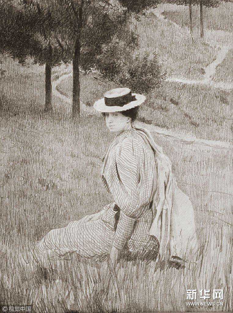 19世纪,法国法国画家路易·威尔登·霍金斯学校,一个戴着帽子的女人坐在草丛中。这种用植物纤维编成的草帽,有着透气凉爽的特性,因此在十九世纪初的休闲社交场合里大量的出现。平顶草帽的外观给人绅士又可爱的感觉,扁扁方方的,但又圆圆的很工整。