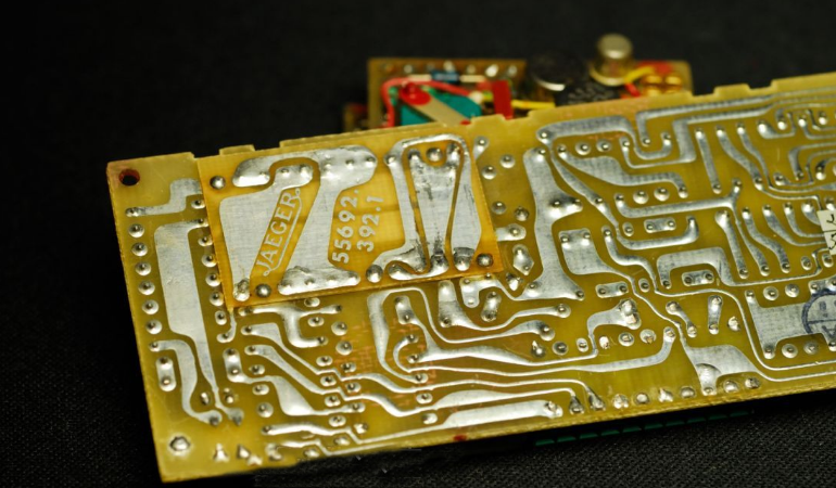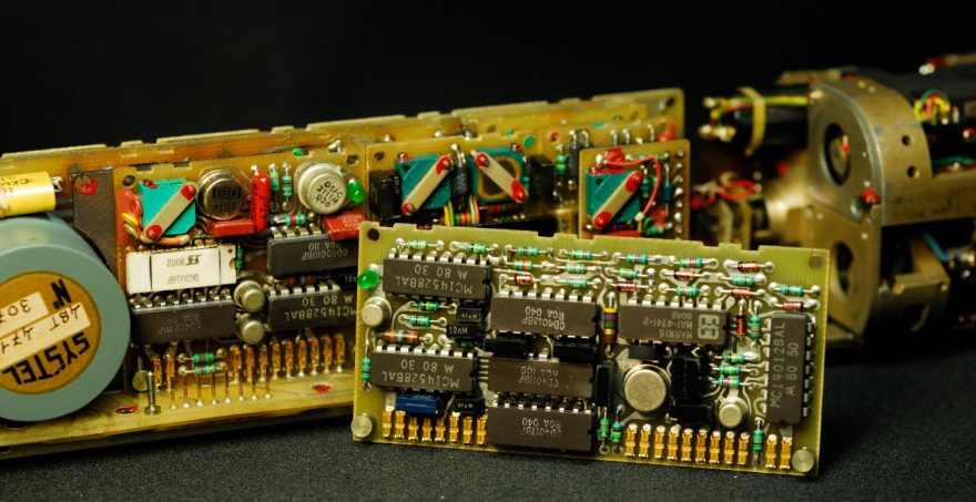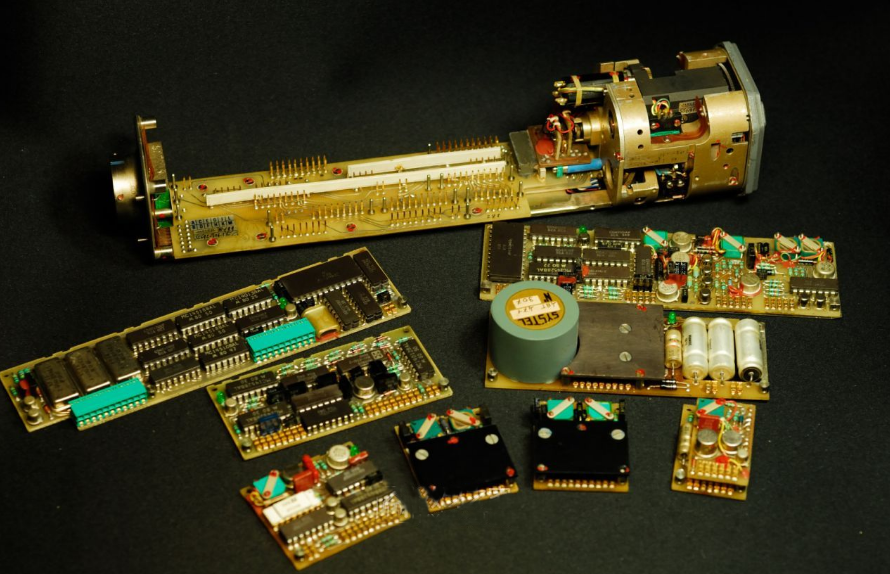 可以看到模块上基本都是陶瓷封装的小规模集成电路,生产于1980年左右。此时的航电设备正处在机械式到电子的过渡时期。由于显示技术和通讯总线技术还不成熟,此时的仪表往往采用模拟信号,由电路处理后再通过一些特殊的机电显示器件,以比较接近传统机械式仪表的指针/转轮等方式呈现。
