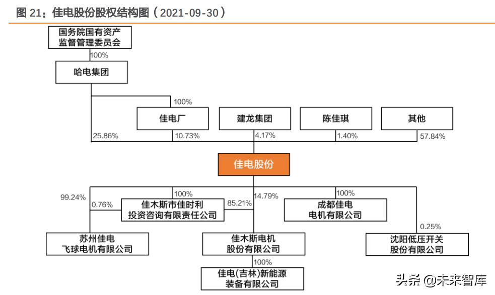公司股权结构稳定,实控人为国务院国有资产监督管理委员会,持股比例达36.59%。①自公司2012年上市以来,哈电集团、佳电厂和建龙集团连续8年稳居公司前三大股东。截至2021年9月30日前三大股东持股比例合计达40.76%。②公司的实控人为国务院国有资产监督管理委员会,通过哈电集团间接持有公司36.59%的股权。