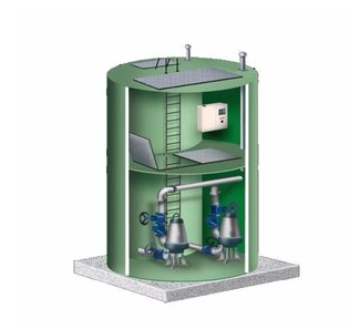 一体化污水提升泵站的基本结构为筒体、维修台、泵组、格栅、智能控制系统、自清池底盘、进出水管、法兰、导轨、自动耦合装置、水位传感器等。