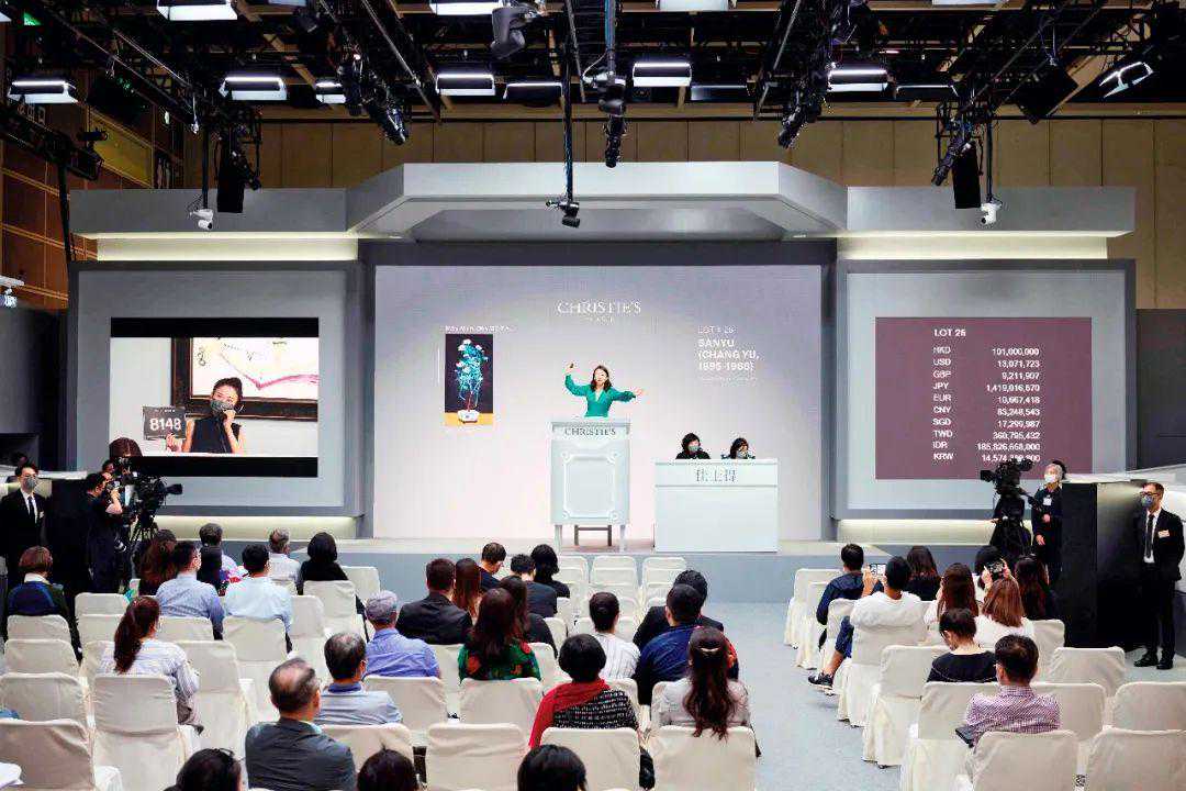 今年春拍首传捷报的还是最早拉开亚洲艺术品春拍的香港苏富比和香港佳士得。4月,香港苏富比经过一周的鏖战,斩获38.5亿港元,以创下9件亿元级拍品和57件千万级拍品的亮眼成绩收官。这是继苏富比进驻中国香港以来的第二高单季成交,仅次于2013年时的40周年庆典拍成绩,同时亦是亿元拍品最多的一季。香港佳士得则在5月以35亿港元、4件过亿元拍品、55件过千万拍品,以及38个世界纪录的好成绩收官。其中,巴斯奇亚1982年作品《无题》以2.34亿港元成为全场最高价拍品,张大千的泼墨泼彩大作《碧峰古寺》以2.09亿港元位居第二,常玉在20世纪50年代创作的《静月莹菊》则以1.186亿港元成交。