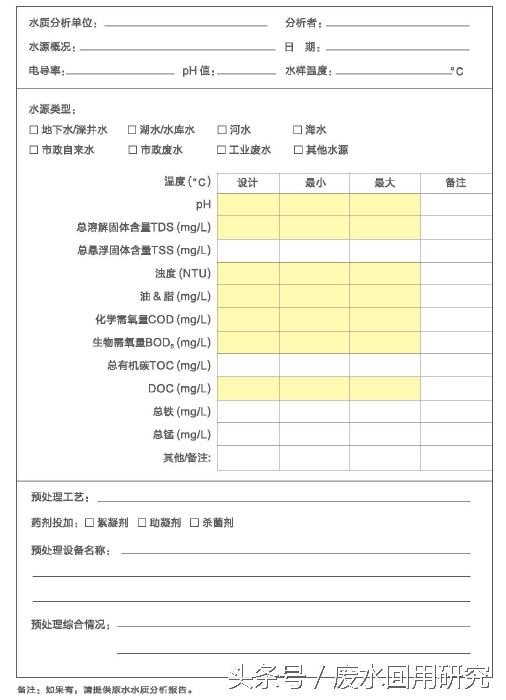 根据下列表1-1及表1-2,收集设计超滤系统所需要的设计基础资料是最好的做法,设计基础资料越全,最终为满足用户需求所设计的超滤系统就更优化。