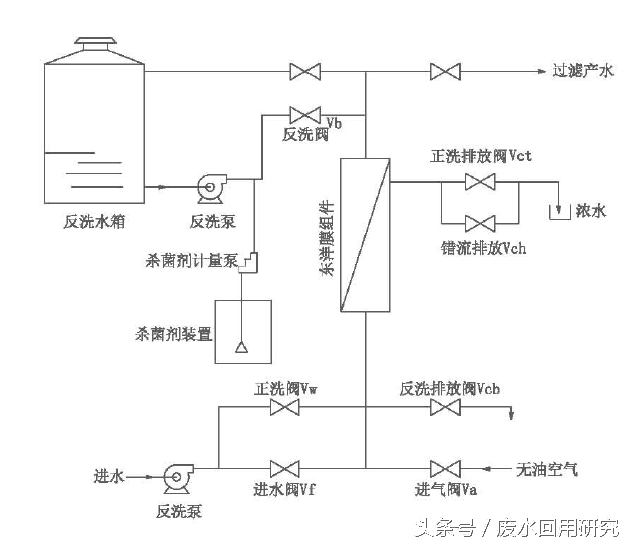 1)流量:膜组件反洗通量可以按100~150L/,折合成膜组件流量后乘以单套装置组件数量即可;