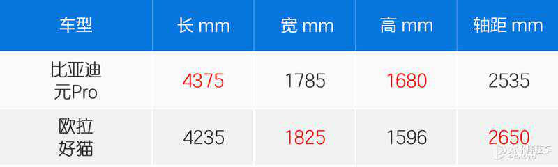 虽然是城市代步车,但后排坐人以及后备箱偶尔承载大件物品的情况自然也免不了。尺寸数据来看,两车各有优势,但整体而言都算是同级中比较突出的了。比亚迪元Pro的优势在于车长和车高更佳,这样的好处是对于车内的乘客来说,会有更佳宽敞开阔的乘坐感受。而欧拉好猫在车高和轴距上更胜一筹,乘坐体验也无需担心。