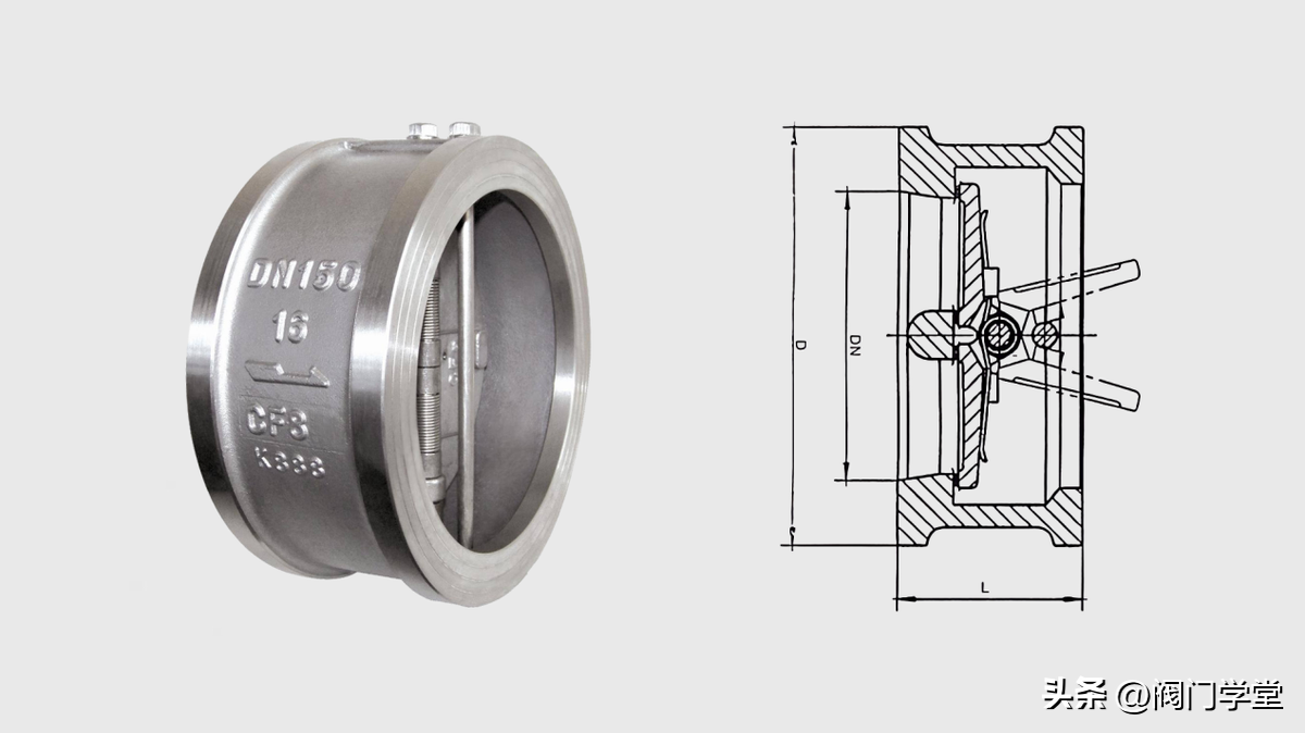 对夹式止回阀因其结构长度短、体积小、重量轻、简单紧凑、动作灵敏等多优点。被广泛应用到工程系统当中。