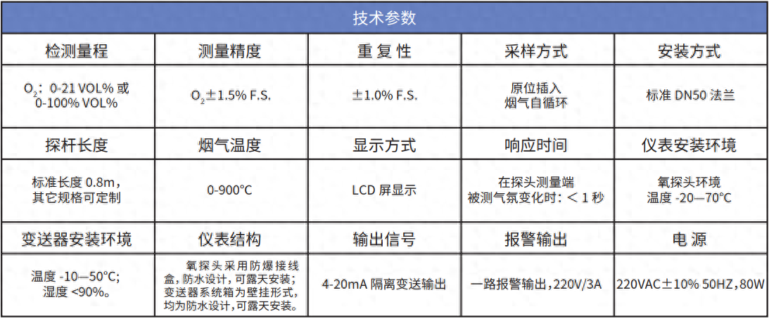 ◎设计有陶瓷过滤器及氧化锆表面保护层,使氧传感器免受高粉尘和腐蚀性气体的污染,进一步提高了氧探头的使用寿命。