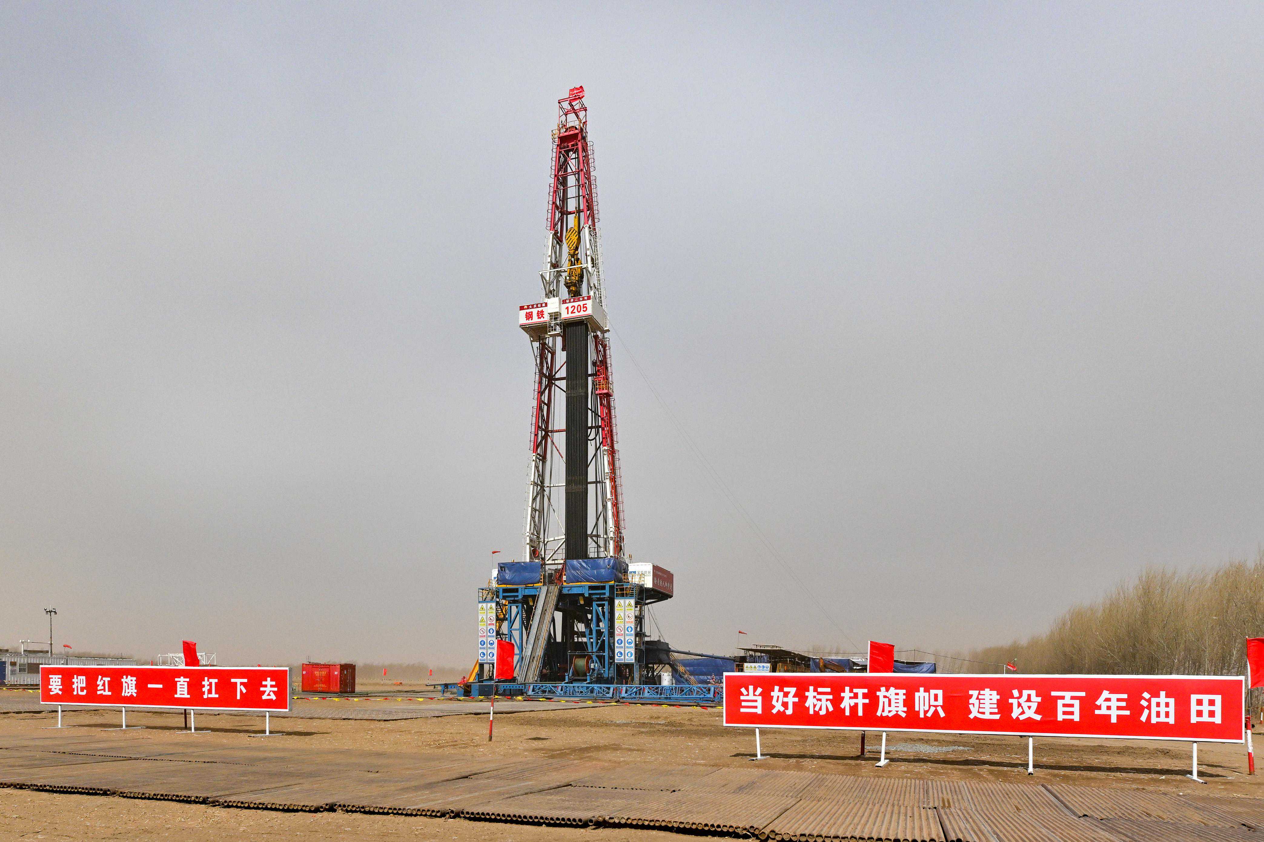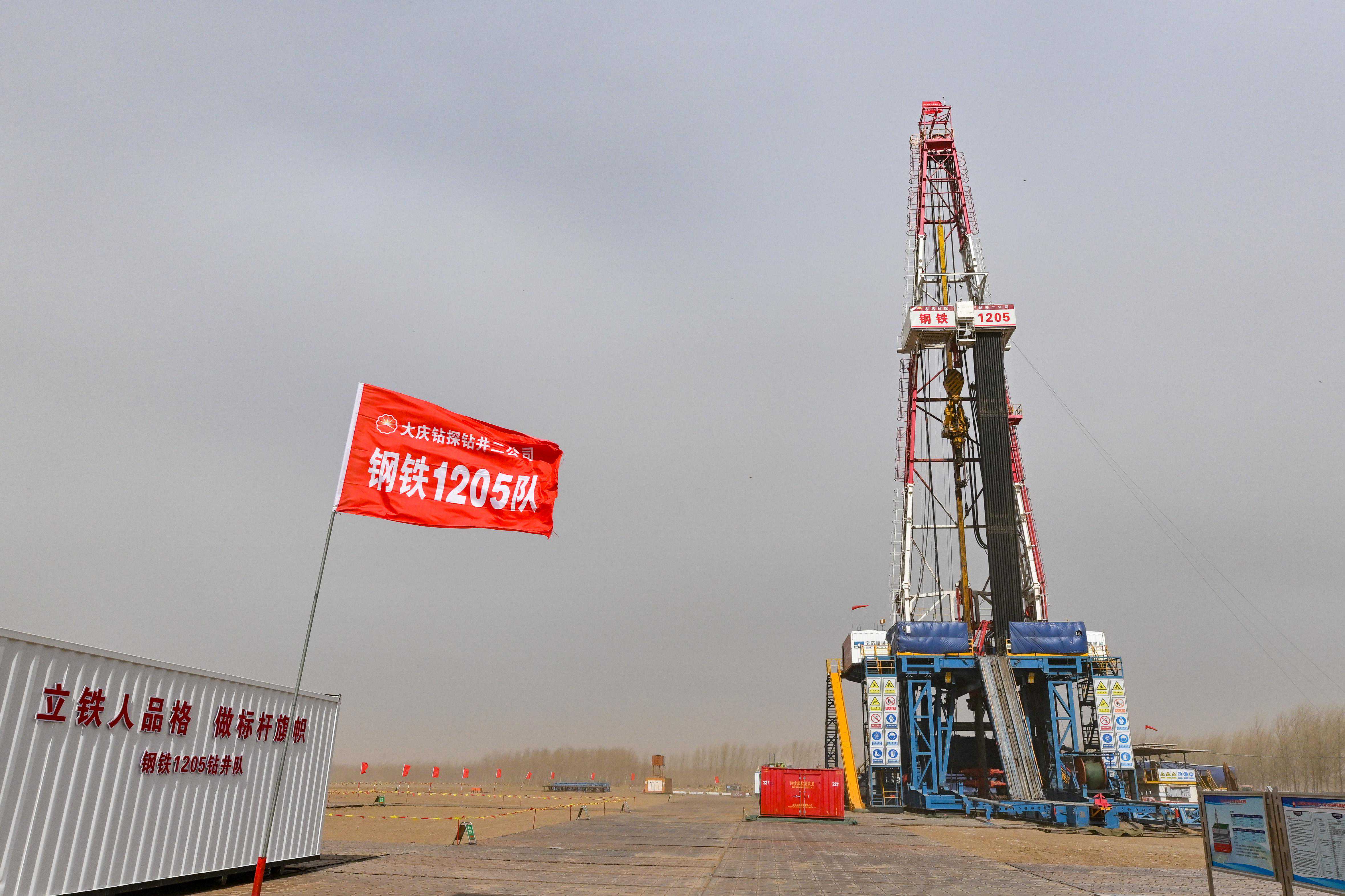 这是3月28日在黑龙江省大庆市拍摄的1205钻井队井架。新华社记者陈益宸摄