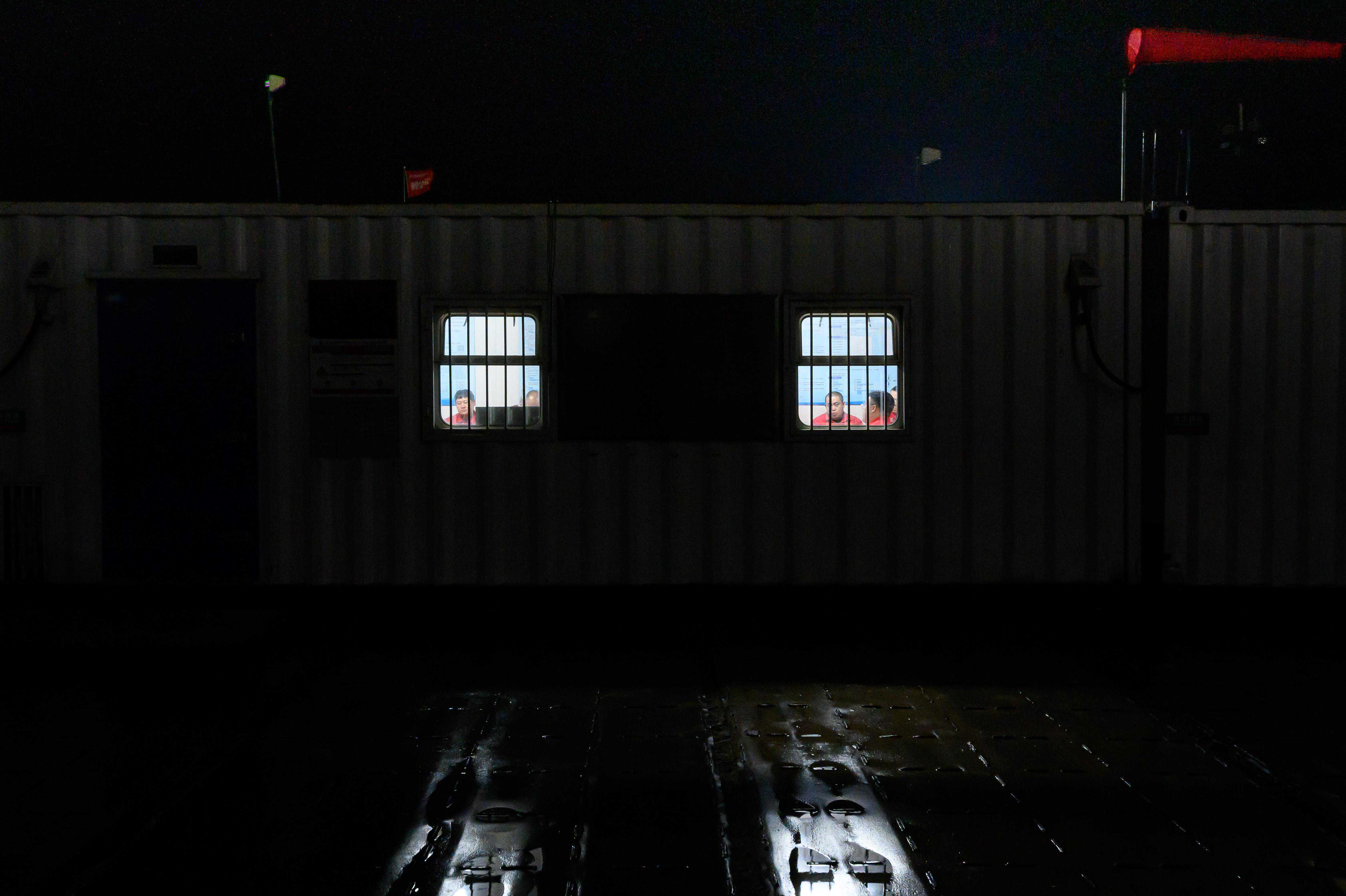 3月27日,1205钻井队的工人们在开交接班会议。新华社记者陈益宸摄