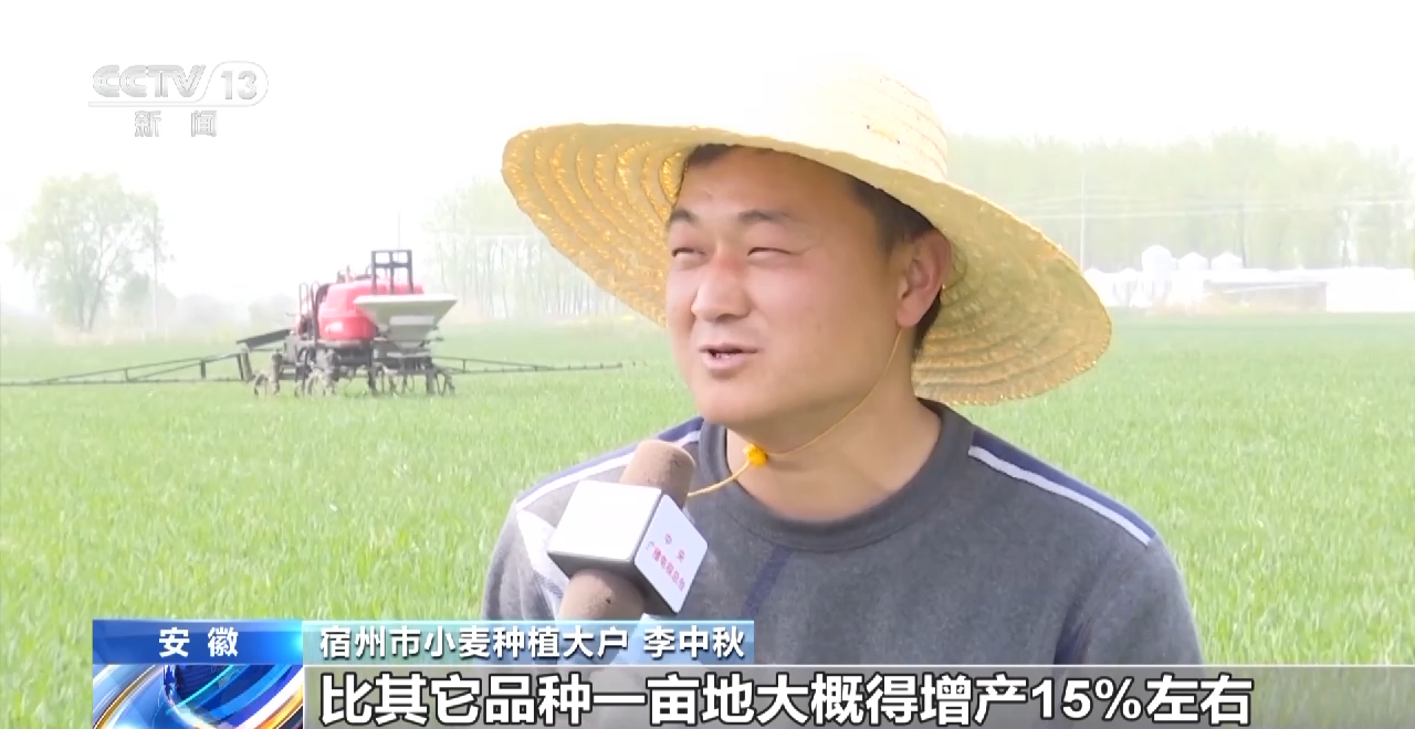 宿州小麦种植大户李中秋:抗寒能力是比较强的,现在基本上我这没有任何的冻害现象。比其他品种一亩地大概增产15%。