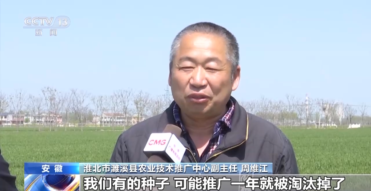安徽省淮北市濉溪县农业技术推广中心副主任周维江:我们有的种子,可能推广一年就被淘汰掉了,所以它能连续推这么多年,说明它有它的优势,老百姓能够认可。