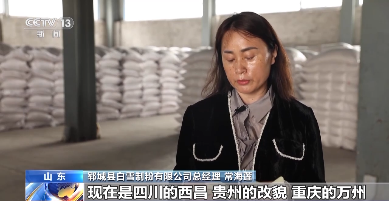 山东省郓城县白雪制粉有限公司总经理常海莲:我们最近都发到四川的西昌、贵州的改貌、重庆的万州,还有四川的南充。