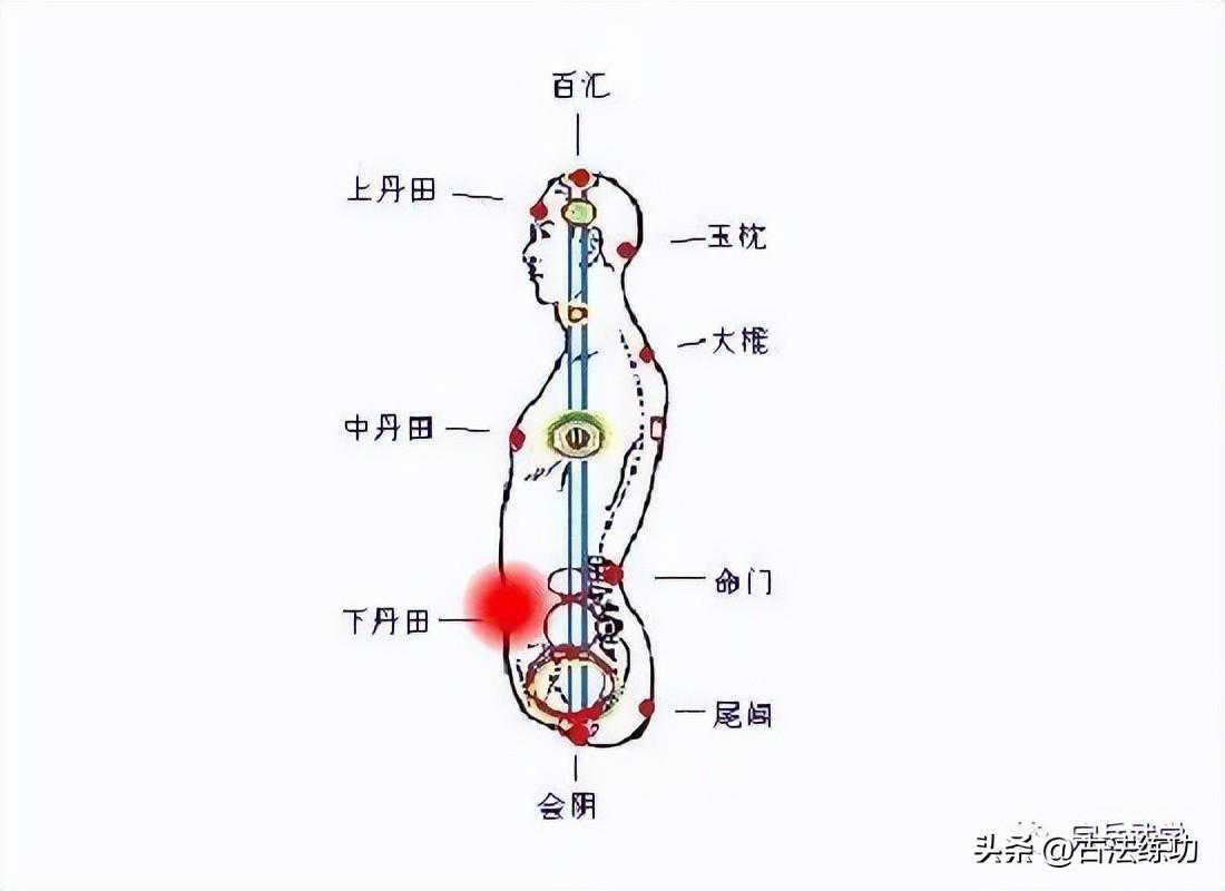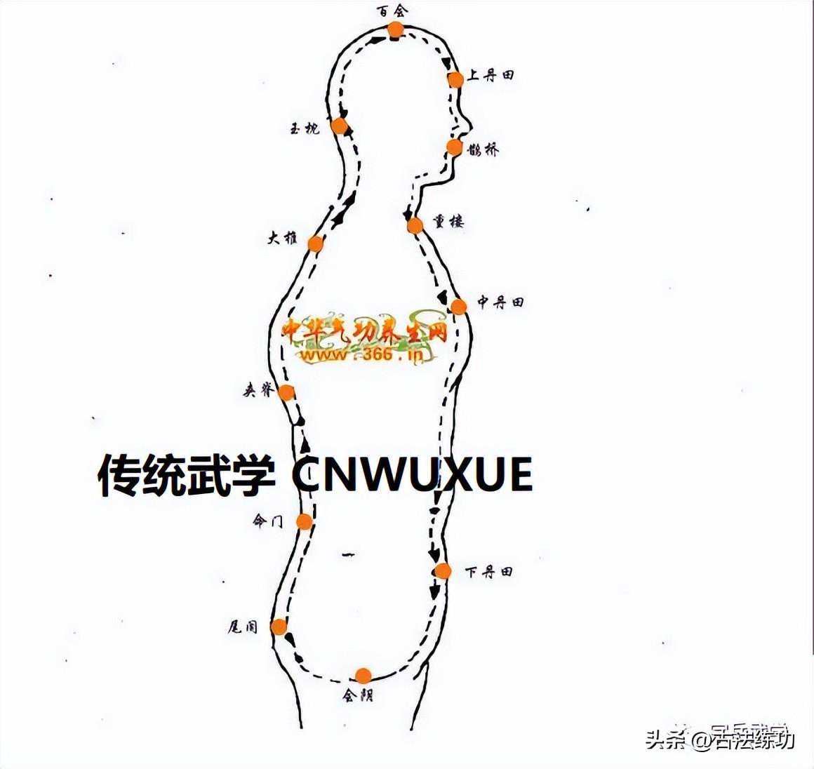 下贯法:与上贯同时,丹田中之内气由会阴返环跳,沿腿之阳面,降于涌泉,此气之下贯也。