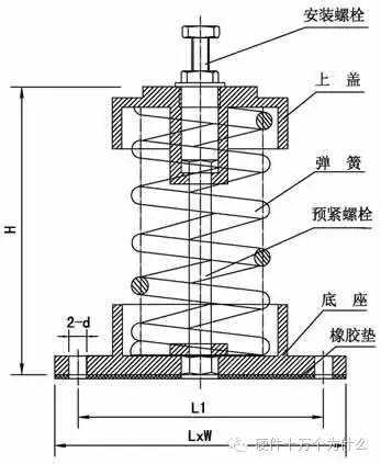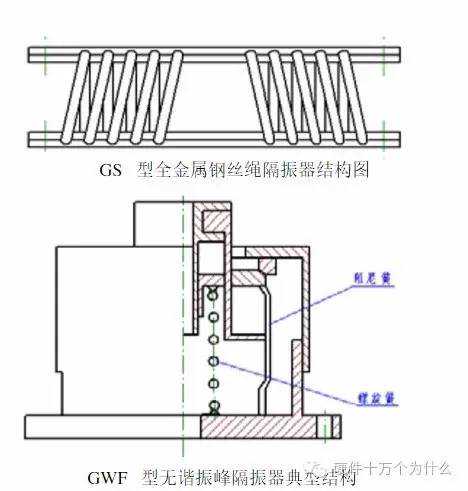 金属弹簧隔振器:承载能力高,变形量大,刚度小(阻尼系数0.01),水平刚度较竖直刚度小,易晃动。