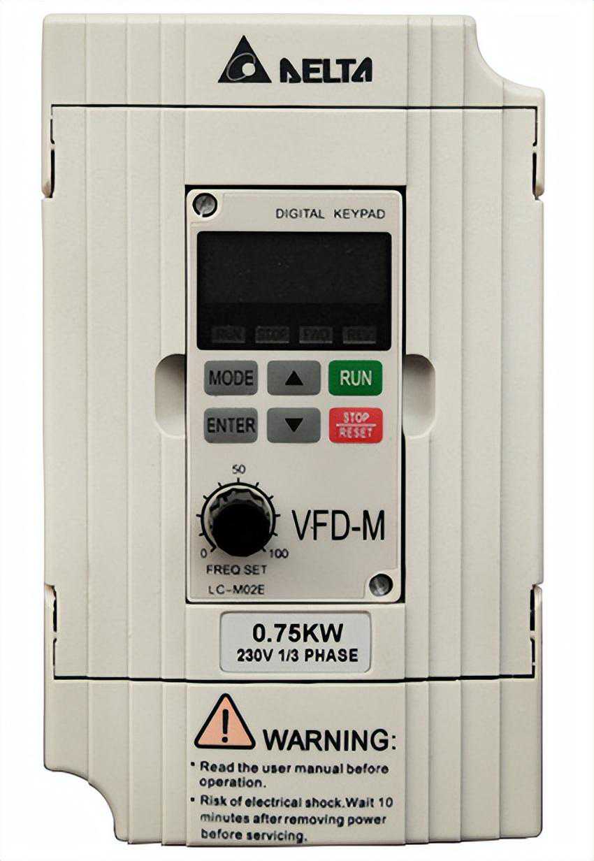 再来看一下外部端子,RA-RB-RC是一组无源继电器输出端子,参数可以根据自己的需要自行设定。RC是公共点,RC-RA是常开点,RC-RB是常闭点。M0到M5是多功能输入端子,GND是公共端,出厂参数M0默认为正转,M1是反转,M2是异常复位,M3-M4-M5是多段速端子,AFM是模拟量输出端子(0-10VDC),ACI是模拟量电流信号输入(4-20ma电流信号),AVI是模拟量电压信号输入(0-10V电压信号),10伏和GND是直流10V电源,GND是模拟量的公共端,MCM和MO1是多功能光耦输出端子。