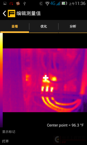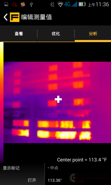 然后可以对图片进行分析和编辑,这时可以看到现场取样的图片和中心点的温度了。