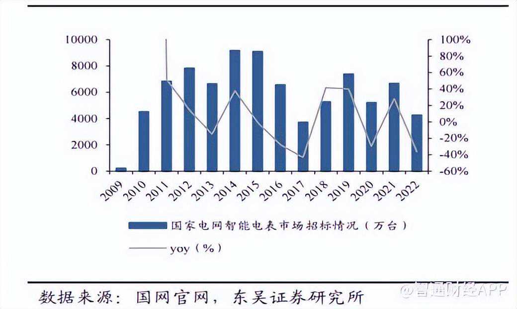 数据显示,2022年中国全社会用电量达86,372亿千瓦时,同比增长3.6%;太阳能发电装机容量约3.9亿千瓦,同比增长28.1%;年内国家电网投资5,000亿元以上,投资金额达历史最高水平,同比增长8.84%,南方电网年内固定资产计划投资达人民币1,250亿元,同比增加两成。智能电表招标方面,国家电网全年共招标逾7,014万台,同比增长4.28%,共计256亿元。