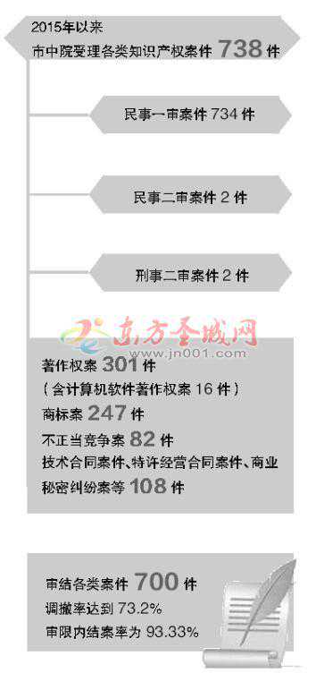据济宁市中级人民法院党组副书记、副院长吕文柱介绍,在审理的众多知识产权案件中,涉及计算机软件、技术秘密、技术合同等科技创新类案件高达385件,占一审案件的52.4%,多数涉及技术研发、成果转移以及产业化等科技创新中的权益保护、成果归属、利益分配等问题。此外,涉及食品、药品、日用品等民生领域知识产权案件的审理也不断增多。