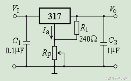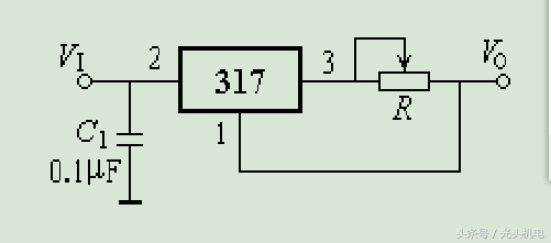 可调输出三端集成稳压器的内部,在输出端和公共端之间的参考源,因此输出电压可通过电位器调节。
