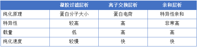 表1是小编整理的不同层析方法特点。亲和层析特异性最高,是目前最常用的蛋白纯化方法。蛋白纯化通常会在目的蛋白的C端或N端加上标签蛋白,如Flag、His、GST等,其中His标签非常小对目的蛋白本身特性几乎没有影响且免疫原性较低是蛋白纯化的首选标签。下期将详细介绍His-tag融合蛋白使用镍柱亲和层析的实验操作和注意事项,感兴趣的小伙伴可以留意一下哦~