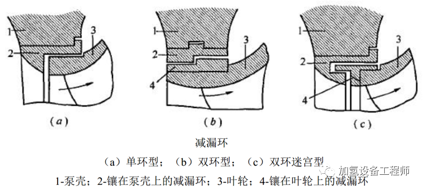 密封环俗称口环,或称为减漏环,分为泵口环和叶轮口环,装在叶轮进口端相对应的泵壳上,它是用来阻止叶轮出口高压液体向进口端回流的一个环状金属环,如图所示,口环的径向间隙大小影响到泵的效率,间隙大效率低,间隙小则会导致泵抱轴。