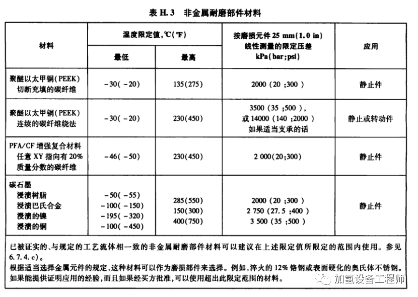 c)对于有非常低或没有咬合趋势的非金属耐磨环材料(见表H3)卖方可以建议采用低于表6中所列值的间隙。应考虑到诸如变形和热梯度的因素。间隙应足够大,以保证在所有规定的工况下可靠运转和避免咬合。