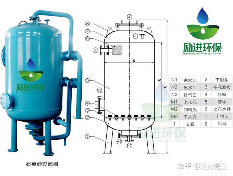 多介质过滤器(又称机械过滤器)是以成层状的无烟煤、砂、细碎的石榴石或其他材料为床层,一个典型的多介质过滤
