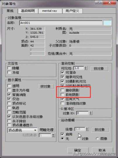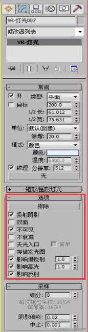 创建一个外景面片,选中面片右键对象属性,去掉接收阴影和投射阴影,这样才能让这个面片不会阻挡我们的光源。