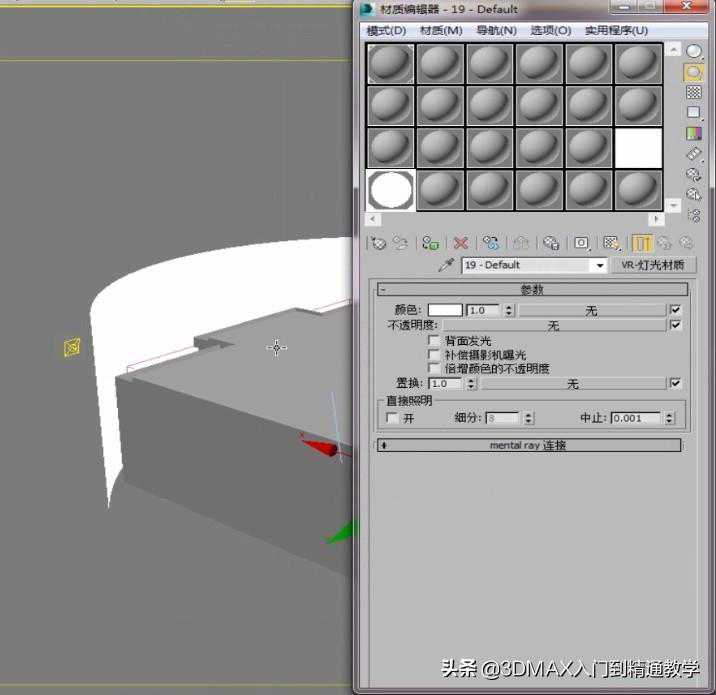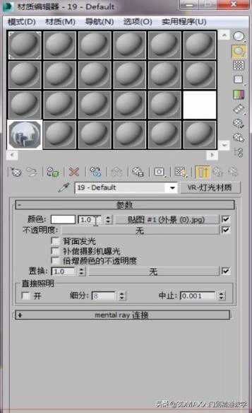 给我们的外景面片一个灯光材质并添加一个外景贴图