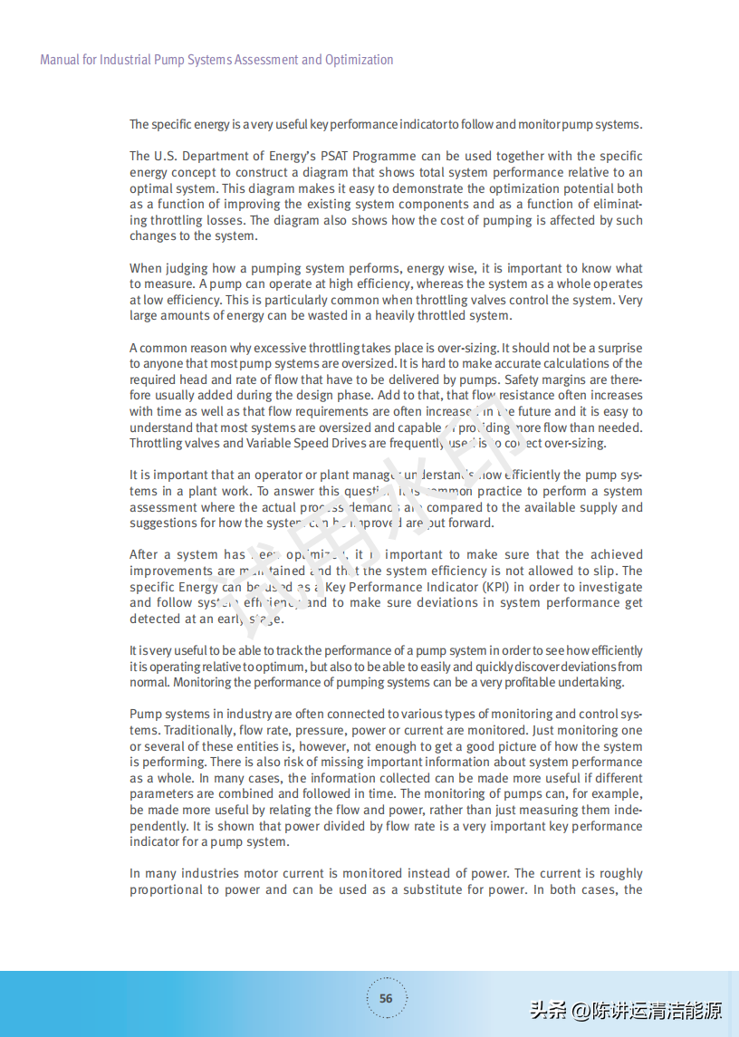 工发组织提供了各种工具,通过知识共享、能力建设、示范、投资和伙伴关系,应对实现工业能源效率的最佳政策、技术和做法的直接挑战。工发组织通过引进和加强能源管理做法和会计方法,帮助提高工业的商业潜力。本《工业泵系统评估和优化手册》旨在为寻求优化现有泵系统的公司提供指导和支持,并为工业能效服务提供商提供额外的知识资源。编译陈讲运