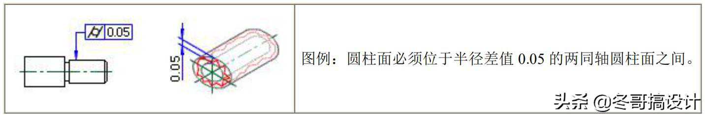 三、圆柱度的公差带的定义及图例说明公差带定义——公差带是半径差值t的两同轴圆柱面之间的区域。