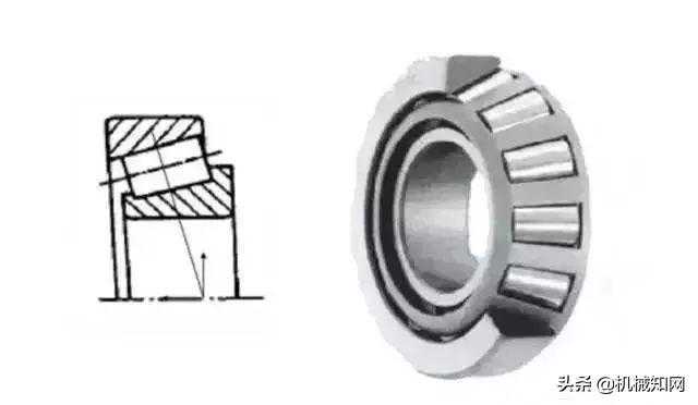 五、圆锥滚子轴承该类轴承装有圆台形滚子,滚子由内圈大挡边引导,设计上使得内圈滚道面、外圈滚道面以及滚子滚动面的各圆锥面的顶点相交于轴承中心线上的一点。单列轴承可承受径向负荷与单向轴向负荷,双列轴承可承受径向负荷与双向轴向负荷,适用于承受重负荷与冲击负荷。