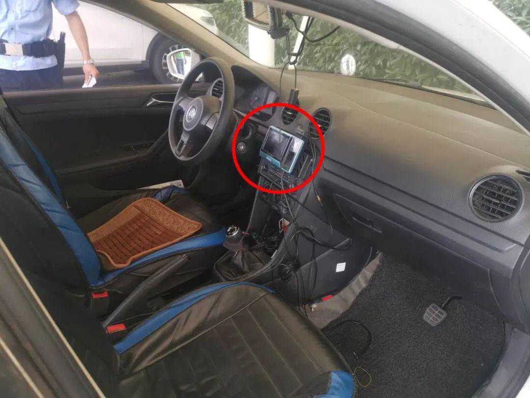 民警立即赶赴现场开展调查工作,到达现场后,民警对嫌疑车辆进行检查,发现教练车的驾驶座位方向盘处有一个蓝色、长方体的塑料物品连接着车辆的数据线,确认是跑码机无疑,随即将嫌疑人金某以及教练车带回派出所。