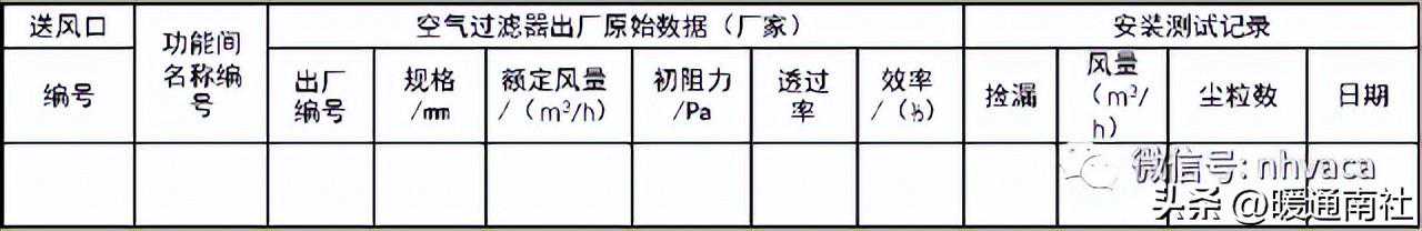 (2)列制高效过滤器安装记录表,样表格式见表2;