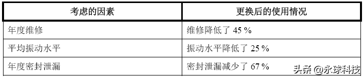 案例1:对北美炼油厂61台泵更换间隙减小的非金属耐磨环后的维修数据、振动及密封泄漏的研究结果,见表1[1]。