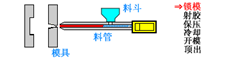 原理:借助螺杆(或柱塞)的推力,将已塑化好的熔融状态(即粘流态)的塑料注射入闭合好的模腔内,经固化定型后取得产品的工艺过程