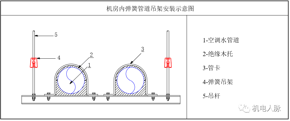1)机房内管道支吊架的安装