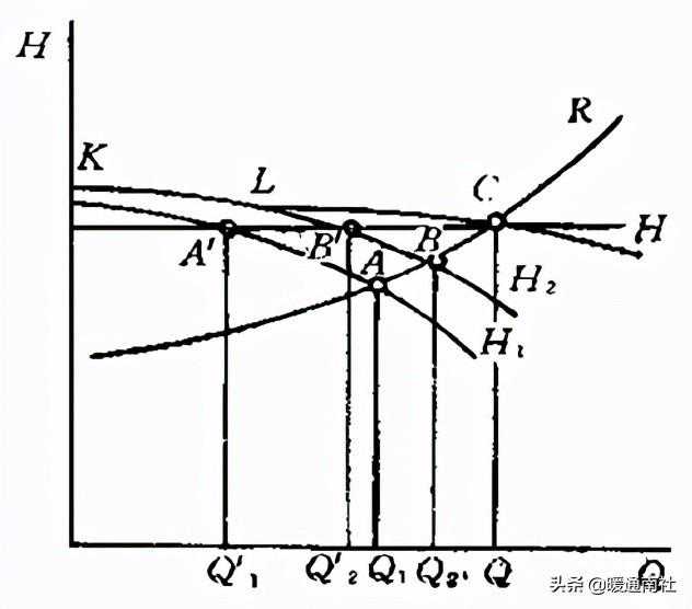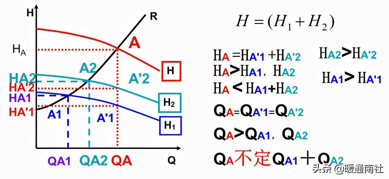 在K-L中某点时,泵2将向泵1倒灌。所以应采用同型号泵或扬程接近的泵并联。