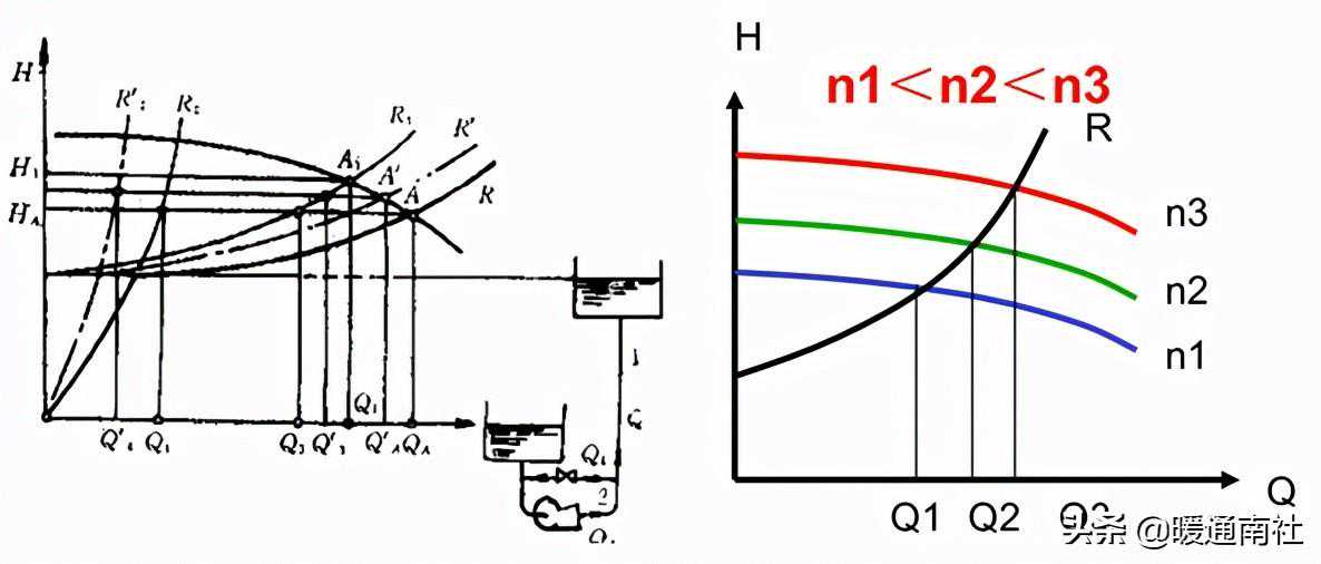特点:方法简单,经济性差,节流引起发热。若泵特性曲线平坦(ns小)且管路特性曲线平坦(阻力小)时,则节流损失小。一般不用关小吸入阀的方法调节。
