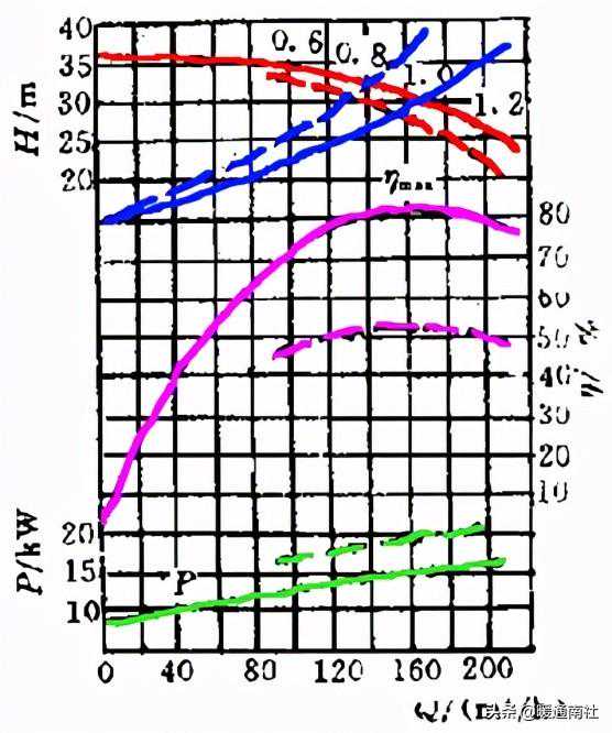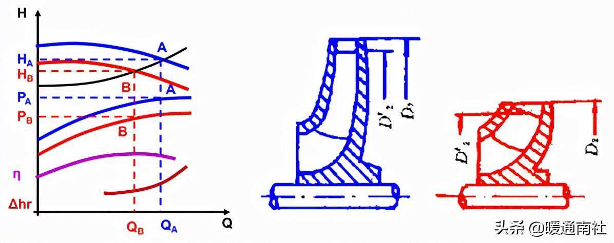 如泵流量和压力超出需要,可切割叶轮外径,降低特性曲线,改变工况参数,节省功率。