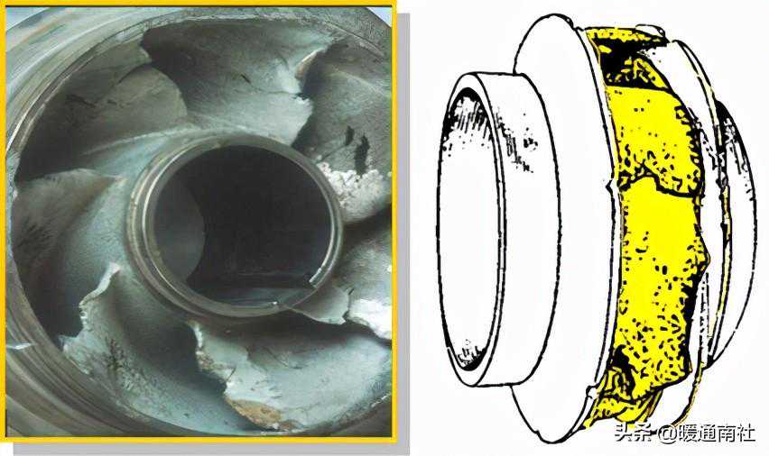 这时泵的Q、H和效率都将降低,严重时导致吸人中断。气穴破灭区的金属受高频高压液击而发生疲劳破坏。氧气借助汽泡凝结时的放热,对金属有化学腐蚀作用。在上述双重作用下,叶轮外缘的叶片及盖板、蜗壳或导轮等处会产生麻点和蜂窝状的破坏。