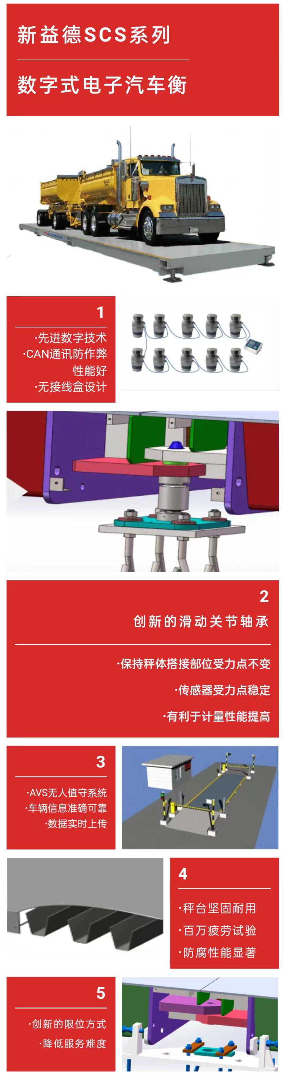 新益德数字式汽车衡广泛应用于矿山、冶金、化工、港口、码头、公用磅、机械加工等行业,在称量车辆货物时可提供准确无误、快速便捷的服务。