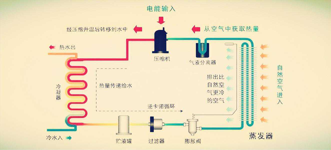 热泵型烘干机设备,它是一种吸收外界中空气热量就可以进行烘干我们果蔬的设备,这种烘干机设备在烘干的时候利用蒸发器在外界中吸收空气中的热量,然后传到压缩机进些压缩成高温高压的气体,再将我们的气体传到冷凝器上进些释放出热量来给我们的物料来烘干,它依次这样循环就是我们热泵烘干机设备烘干的原理。