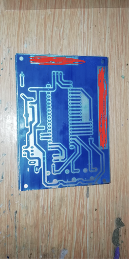 在覆铜板上涂抹好感光蓝油。这个是事涂好的。感光蓝油需要3-4天自然风干。用吹风机吹会加快干燥速度。不粘手基本上就干了。一定要彻底干燥否则会制作失败