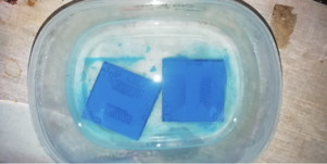 显影结束后放入自来水清洗。如果显影有残留在放入显影液1分钟,显影完应该是这样的图