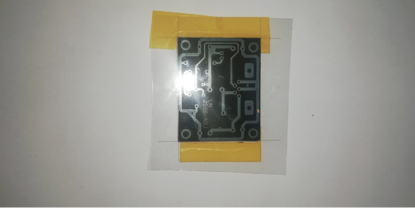 裁好感光板。板尺寸要比PCB长宽大1mm。如果和图纸一样大。感光过程可能PCB边缘缺失。这个是很难避免的。只有加大覆铜板。将打印好的菲林纸紧紧的贴在感光板上在太阳下面曝光3分钟左右。我用的是T5紫外线灯5分钟。