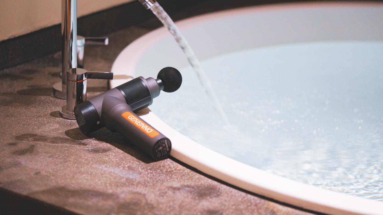 晚上游完泳、健身完、或者回到家泡个澡,吉影这款防水筋膜枪的优势就体现出来了,可以直接在水里用,而且效果更明显。