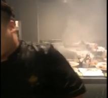 也许是因为火焰太大,在表演的过程中,包间内的消防喷淋系统被触发,正在表演的厨师和客人都被淋成了落汤鸡,晚餐也不得不终止。