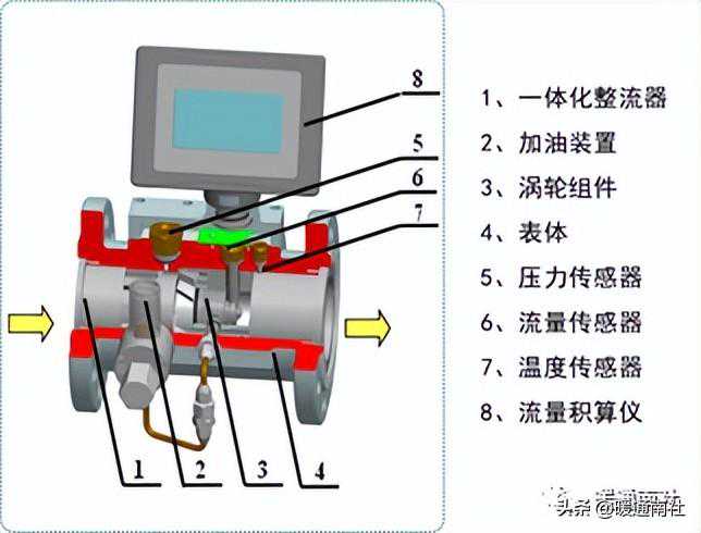 E、流量传感器:流量传感器根据涡轮转速的大小接收成正比的流量信号,并把流量信号发送给体积修正仪;