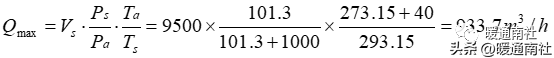 计算:根据公式(1)可知:当介质压力最低、温度最高(估算可不考虑天然气压缩因子的影响),并处于供气高峰时具有最大的体积流量,所以有: